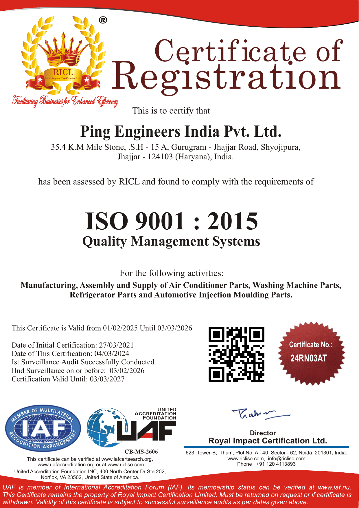 We are ISO 9001:2015 and ISO 14001:2015 Certified. Ping Engineers comply with all necessary standards and requirements to keep consistency in quality.